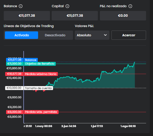 En este artículo quiero compartir contigo cómo he completado con éxito la Fase 1 del FTMO Challenge con una cuenta de 10.000 €, aplicando un enfoque profesional y sin asumir riesgos innecesarios.